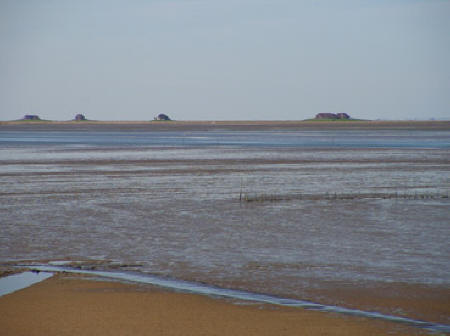 Wir sehen die 5 Häuser hoch auf ihren 4 Warften